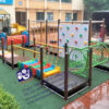 Quy cách: Bộ liên hoàn ống chui, leo núi, dao động. Ống chui đường kính 60cm dài 1.5m, các bục chữ nhật vách leo, con quay được làm bằng nhựa LDPE đúc liền khối màu sắc đa dạng . Cột trụ làm bằng ống thép Ø88.3, sàn bằng tôn đột đạp dày 1.5ly, thanh xà , tay treo bằng ống Ø60, Ø48, Ø32,Ø27 mạ kẽm sơn tĩnh điện ngoài trời.