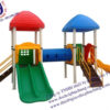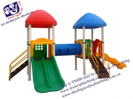 Quy cách: Sàn nhà chòi KT 1.1mx1.1m và 0.7*1.8m dầy 1.8mm , cầu thang làm bằng tôn dày 1,8ly sơn sần tĩnh điện ngoài trời. Cột làm bằng ống thép #90 dày 1,8mm, lan can, vách sắt, tay vịn làm bằng ống 32 dày 1,5mm mạ kẽm sơn tĩnh điện. Các chi tiết nhựa nhập khẩu làm từ nhựa LDPE màu sắc đa dạng, ống chui bằng nhựa LDPE đúc liền đường kính #600mm, dài 1.6m, cầu trượt đơn và đôi dài 2.2m.
