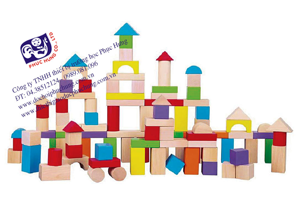 Quy cách: Bộ xếp hình xây dựng 100ct-pxd38. Bộ xếp hình xây dựng 100 chi tiết làm bằng vật liệu bằng gỗ sơn màu đảm bảo tiêu chuẩn an toàn, gồm 100 chi tiết