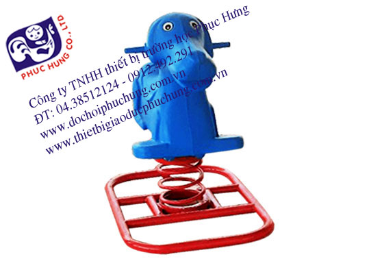 * Thân chó gắn trực tiếp lên **một lò xo lớn**, cho phép nhún lắc theo nhiều hướng (trước – sau, trái – phải).